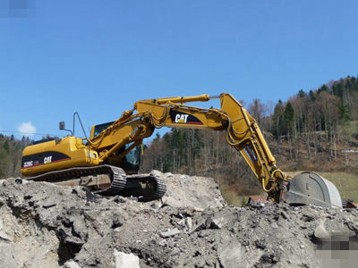 当挖掘机在转弯的时,其中一侧的履带行走、另一侧履带不动,出现大幅度的旋转运动,如果履带被地面上凸起的部分阻挡,就会卡到转动一侧的履带,履带很容易被拉伤。